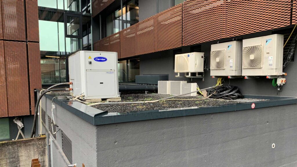 Das Hochhaus der Fa. BORA wurde mit drei hocheffizienten Luft-Wasser-Wärmepumpen mit dem klimafreundlichen Kältemittel Propan für die Heizung und Kühlung ausgestattet. Die neuen Wärmepumpen wurden in das bestehende hydraulische Netz eingebunden.